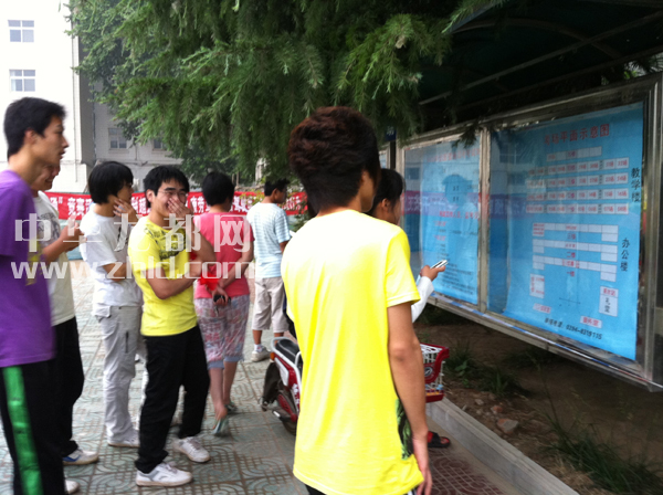 上圖:考生們陸續(xù)到所屬考點(diǎn)查看考場(chǎng)平面示意圖。 (記者 王映攝)