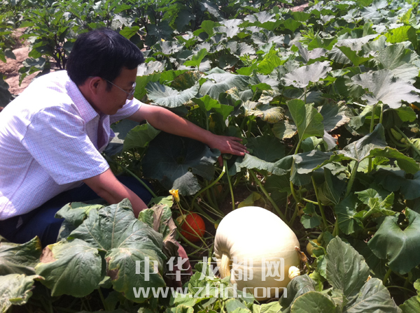 川匯區(qū)蔬菜研究所副所長(zhǎng)康俊君蹲下身子撥開(kāi)綠綠的葉子,指著已長(zhǎng)成的太空南瓜(如圖二)說(shuō):“現(xiàn)在這個(gè)太空南瓜有十多斤重了,這些南瓜最大可長(zhǎng)到幾十斤甚至百斤。”