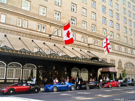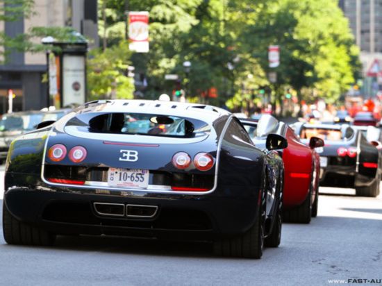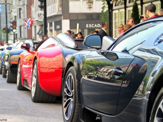 ??? 在上周末剛剛結(jié)束的F1蒙特利爾站上,劉易斯哈密爾頓如愿的把冠軍獎杯抱回了家。然而在F1的賽場外還有另一場盛會,在蒙特利爾的街頭聚集了5輛布加迪威航,預(yù)估參加這次聚會的布加迪總價(jià)值加起來近1.4億元人民幣。