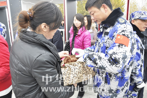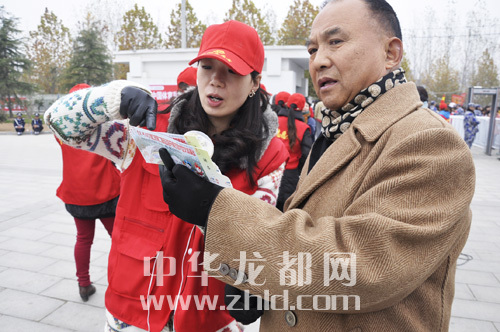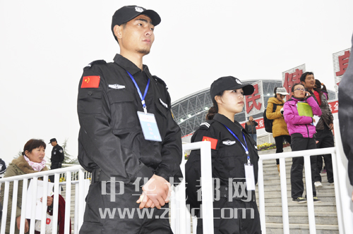 巾幗志愿者為觀眾熱情服務。