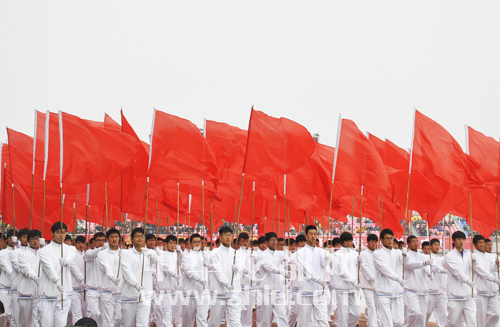 紅旗迎風飄揚。