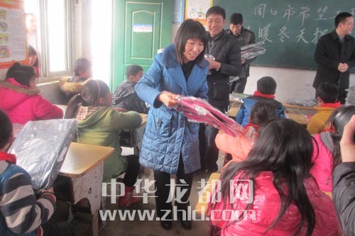 ???????2月3日,共青團(tuán)項(xiàng)城市委在該市開展了“關(guān)愛留守兒童”溫暖冬日活動(dòng),志愿者把圍巾、帽子、書包等愛心物品送給蓮花辦事處徐樓行政村的留守兒童,為他們送去溫暖和關(guān)愛?! ⊥韴?bào)記者 金月全 攝 線索提供 張紀(jì)友