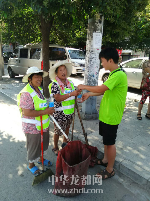 ????又是一年最熱時(shí),在馬路上工作的交警和環(huán)衛(wèi)工可謂備受煎熬。有感于交警和環(huán)衛(wèi)工的辛苦,7月29日,愛(ài)心學(xué)校和公益機(jī)構(gòu)以送瓶裝礦泉水的方式,向他們表達(dá)了自己的敬意。晚報(bào)記者 郭坤 張燕 攝