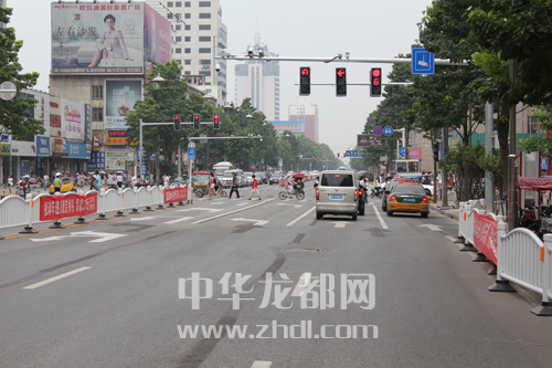 ????據(jù)了解,隨著七一路(六一路至中州大道段)的升級改造完成,該路段路面拓寬,通行非常暢通,還增加了很多人性化、都市化的設(shè)施:雙向4車道變成雙向9車道,路口的紅綠燈變成雙信號燈(圖一),取消了安全島,重新施劃了非機動車道和行人斑馬線(圖二),增加了左轉(zhuǎn)帶調(diào)頭標(biāo)線等。