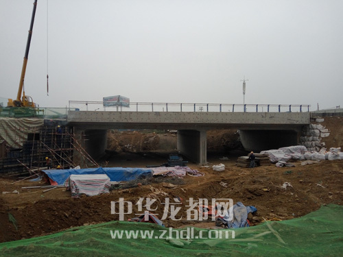 ????一橋,是互通立交的主體。整個(gè)立交橋凈高4.9米,有兩個(gè)橋洞,中間由寬1米的墻隔開,每個(gè)橋洞凈寬16米,設(shè)置單向雙車道和兩米寬的人行道。加上立交橋兩側(cè)各1米的墻寬,整個(gè)立交橋?qū)?5米。同時(shí),立交橋位置向北的周口大道兩側(cè)將增設(shè)寬2.5米的人行道。
