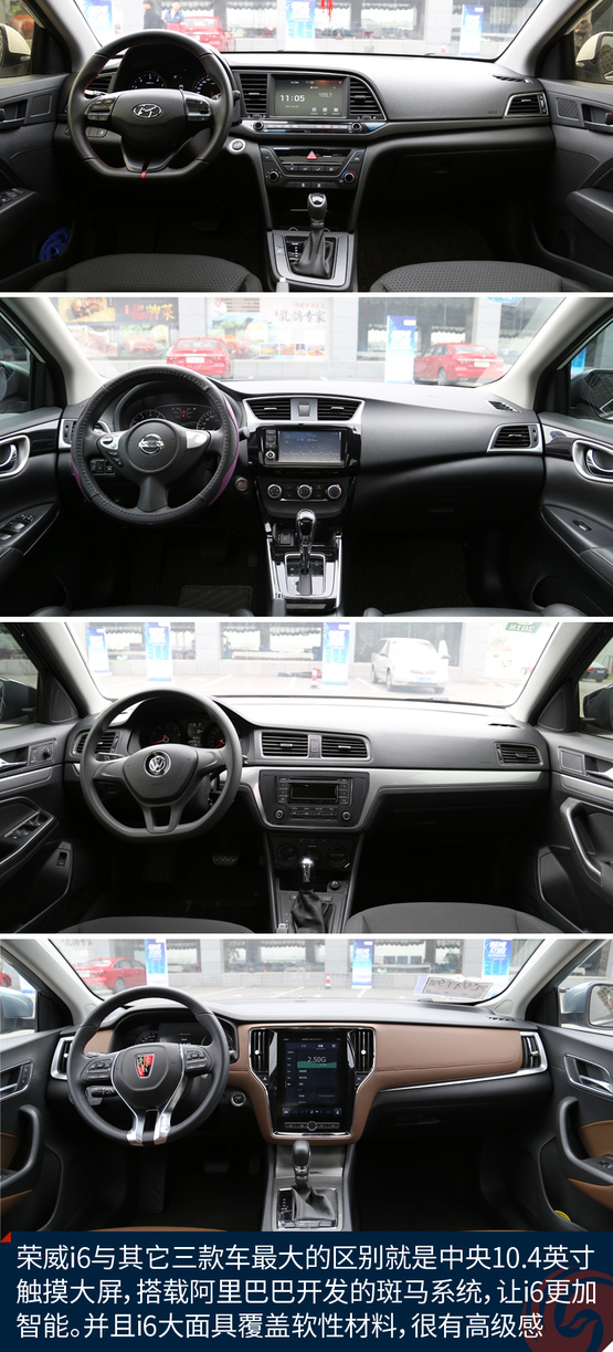 為了公平起見(jiàn),我們選擇了價(jià)位基本接近的幾款車型的配置,它們的均價(jià)都在13萬(wàn)左右。目前榮威i6可以享受7000元的購(gòu)置稅補(bǔ)貼。另外三輛車也有一定程度上的優(yōu)惠。雖然價(jià)格區(qū)別不大,但是配置上的差異確是相當(dāng)明顯的,榮威i6作為一款互聯(lián)網(wǎng)汽車,擁有遠(yuǎn)程車控、語(yǔ)音控制、雙盲導(dǎo)航、自適應(yīng)地圖等功能。榮威i6還接入了支付寶功能,汽車維保、加油、停車等服務(wù),用戶都可通過(guò)支付寶進(jìn)行支付??梢哉f(shuō)一款非常年輕化的家用轎車。另外在安全配置方面,榮威i6也是這四輛車中最完備的。
