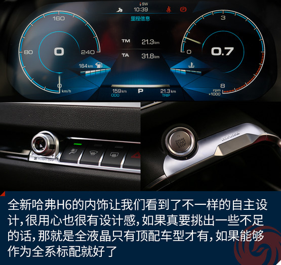 一切以駕駛員為中心的設(shè)計(jì)理念值得肯定,微微朝向駕駛員的中控設(shè)計(jì),全新的電子換擋桿以及多媒體控制旋鈕都給我留下了很深的印象,當(dāng)然了全景天窗進(jìn)一步增加了車內(nèi)空間的開揚(yáng)感,全新設(shè)計(jì)的四幅方向盤的握感厚實(shí),多功能按鍵功能也十分齊備。總之,全新哈弗H6的內(nèi)飾讓我們看到了不一樣的自主設(shè)計(jì),很用心也很有設(shè)計(jì)感,沒有了雜亂無章,相反,這樣的設(shè)計(jì)會(huì)讓人很愿意和汽車獨(dú)處,如果真要挑出一些不足的話,那就是全液晶只有頂配車型才有,如果能夠作為全系標(biāo)配就好了。