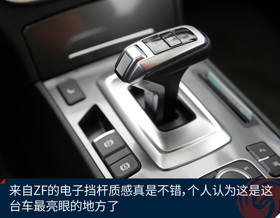 當(dāng)然,這些東西同級(jí)別中或許都能看到,不算稀奇,如果說這臺(tái)車與藍(lán)標(biāo)的最大區(qū)別,就得說儀表板中間的電子擋桿了,第一眼看到就被它的質(zhì)感吸引了,一點(diǎn)兒都不像在15萬(wàn)這個(gè)級(jí)別中能看到的配置,與自家H2s一樣來自ZF的電子擋桿握感完美,操作方便,跟奧迪、寶馬等車的操作體驗(yàn)沒什么區(qū)別。