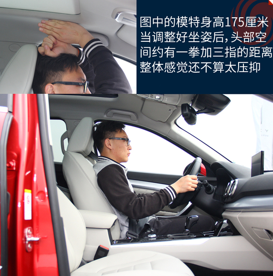 體驗(yàn)者身高175厘米,前排座椅降到最低的時(shí)候頭部還有比較充足的余量,完全不會(huì)感覺(jué)到壓抑;不過(guò)后排頭部就不太行了,頭部距離車(chē)頂非常接近,要是身高再高一些的乘客坐進(jìn)后排,已經(jīng)基本上快頂?shù)筋^了。儲(chǔ)物空間中規(guī)中矩,基本上沒(méi)有太多讓人驚喜的地方。扶手箱的空間不小,高度也合適,可以放些雜物。