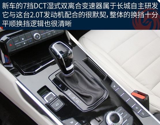 由于渦輪介入的時(shí)間稍晚一些,起步時(shí)不會(huì)讓你感覺(jué)特別的輕快,但也不會(huì)差到讓你無(wú)法接受,只要保持平常心就好;當(dāng)這臺(tái)2.0升的渦輪增壓直噴發(fā)動(dòng)機(jī)真的卯足了勁發(fā)力之后,360牛米的最大扭矩完全不是鬧著玩的,后背感覺(jué)有人在猛使勁的把你向前推。長(zhǎng)城自主研發(fā)的7擋濕式雙離合變速器是新車(chē)的一大亮點(diǎn),日常駕駛的過(guò)程中升降檔都有著不錯(cuò)的平順性,不過(guò)起步初期離合器結(jié)合的速度還是稍微有一些慢,急加速時(shí)變速箱的反應(yīng)也不夠靈敏,這在一定程度上拖累了整體的動(dòng)力表現(xiàn)。