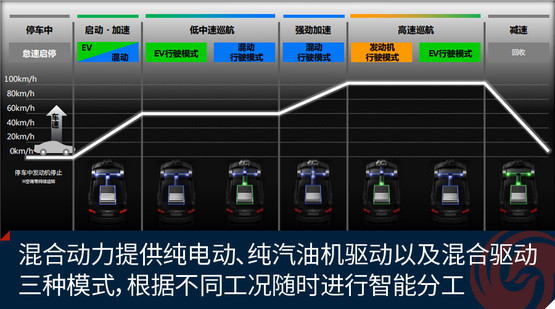 只有當車速高于65公里/時且油門開度合適時,這套動力系統(tǒng)才會有可能讓發(fā)動機單獨驅(qū)動車輪,但此時其還有一部分工作是為電動機充電。而在此時,如果車輛向前的驅(qū)動力是依靠發(fā)動機來輸出的話,那么其電動機將不會為車輛提供動力。換句話說,也就是意味著思鉑?;靹拥倪@套i-MMD系統(tǒng)雖然在車上搭載著兩個動力源,但是平時在城區(qū)行駛,它在驅(qū)動車輛前行時更多情況下會使用到的有且只有一個。