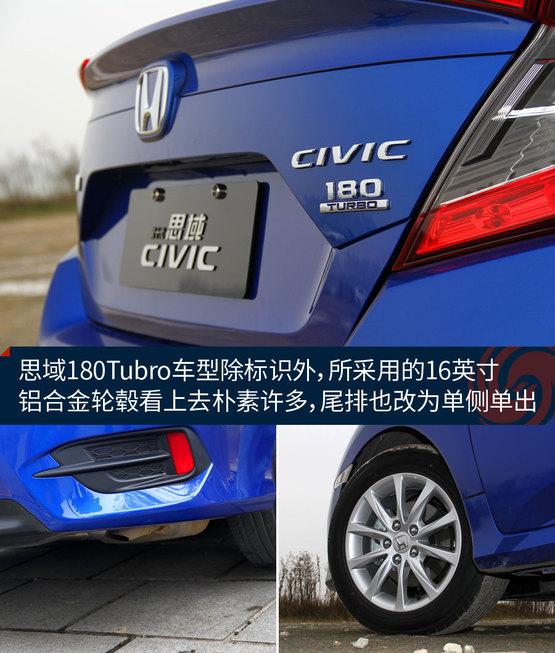 隨著思鉑?;靹榆囆偷耐瞥觯@次走入門路線的思域1.0T也來打了個醬油。跟之前的1.5T車型相比,外形基本保持一致。鑒于其更入門的定位,輪轂的樣式看起來沒那么精致和動感了,尾排改為了單側(cè)單出的設(shè)計,車尾的動力標識也有之前的“220TURBO”改為“180TURBO”。