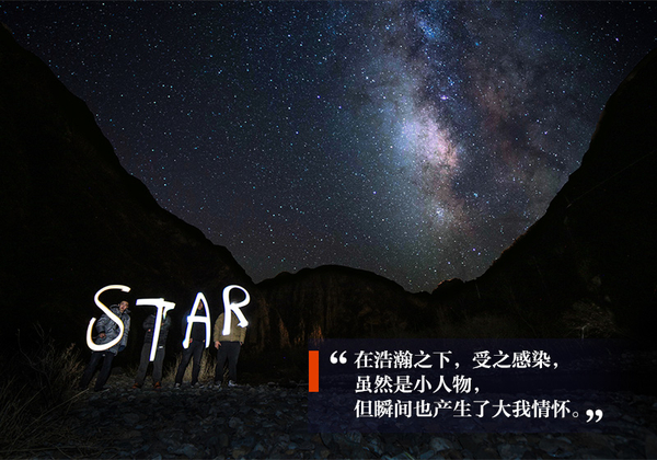 “水氣勝風涼,星輝當月光”,當那一點皎潔也無蹤影時,你才看見銀河的閃現(xiàn),時間光輪的轉(zhuǎn)動;你才聽見流水的沖刷,風聲的蕭瑟。你會不由自主的屏氣凝神,贊嘆萬物之奇,星漢之燦,隨著一口冷空氣的吸入,沁人心脾,感覺整個人都精神了,白日的混沌被天界自然洗凈。