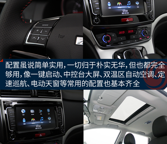 ????????內飾相對的看著沒那么大的驚喜,主要是它與老款哈弗H6車型的樣子基本保持一致,包括橫向空調出風口、大尺寸中控屏幕以及換擋桿造型。配置方面,該車配備了多功能真皮方向盤、防夾電動天窗、一鍵啟動、雙溫區(qū)自動恒溫空調、自動雨刷、自動大燈、主駕駛電動座椅等實用裝備,對于不到10萬的家用車來說太夠用了,沒必要再弄那些花里胡哨的東西,比單純?yōu)榱俗非筻孱^和性價比要好,總結一句話就是:一切簡單就好!