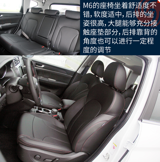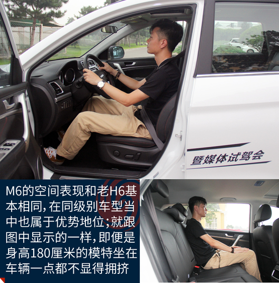????????M6的空間表現在同級別車型當中屬于優(yōu)勢地位,主要原因就是內部空間和H6基本沒區(qū)別。特別得說新車的座椅,很柔軟、舒服,包裹性也不錯。不過坐姿真的有點高,前排座椅調到最低后還是能看到整個機艙蓋,這樣倒是為了安全性;后排的座椅還要更高一些,有點類似劇院式的設計,給后排乘客減少了壓抑感。