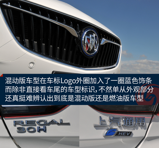 ????????仔細(xì)對比才會發(fā)現(xiàn),混動(dòng)版車型在車標(biāo)Logo外圈加入了一圈藍(lán)色飾條,而除非直接看車尾的車型標(biāo)識,不然單從外觀部分還真挺難辨認(rèn)出到底是混動(dòng)版還是燃油版車型。