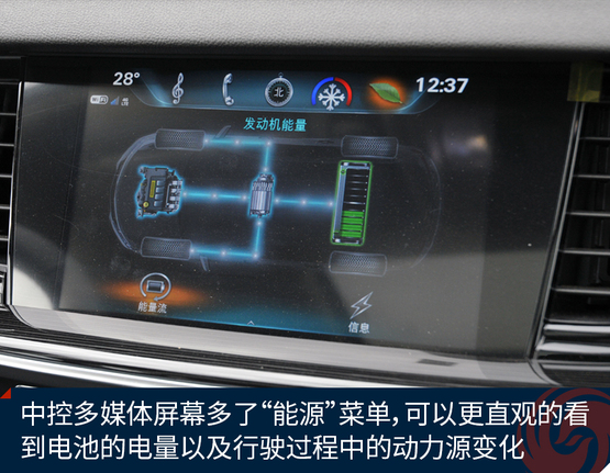 ????????中控多媒體屏幕多了“能源”菜單,點(diǎn)進(jìn)去可以更直觀的看到電池的電量以及行駛過程中的動(dòng)力源變化。