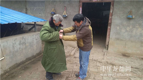 “前一段時間你給我們送的新被子還沒舍得蓋呢,這剛下大雪,又給我們送來了棉大衣。外邊太冷,快到屋里坐,快到屋里坐。”鄲城縣發(fā)改委主任孟憲紅把棉大衣挨家送到雙樓鄉(xiāng)張廟村貧困老人家中,張老漢感激不已,連忙讓座。