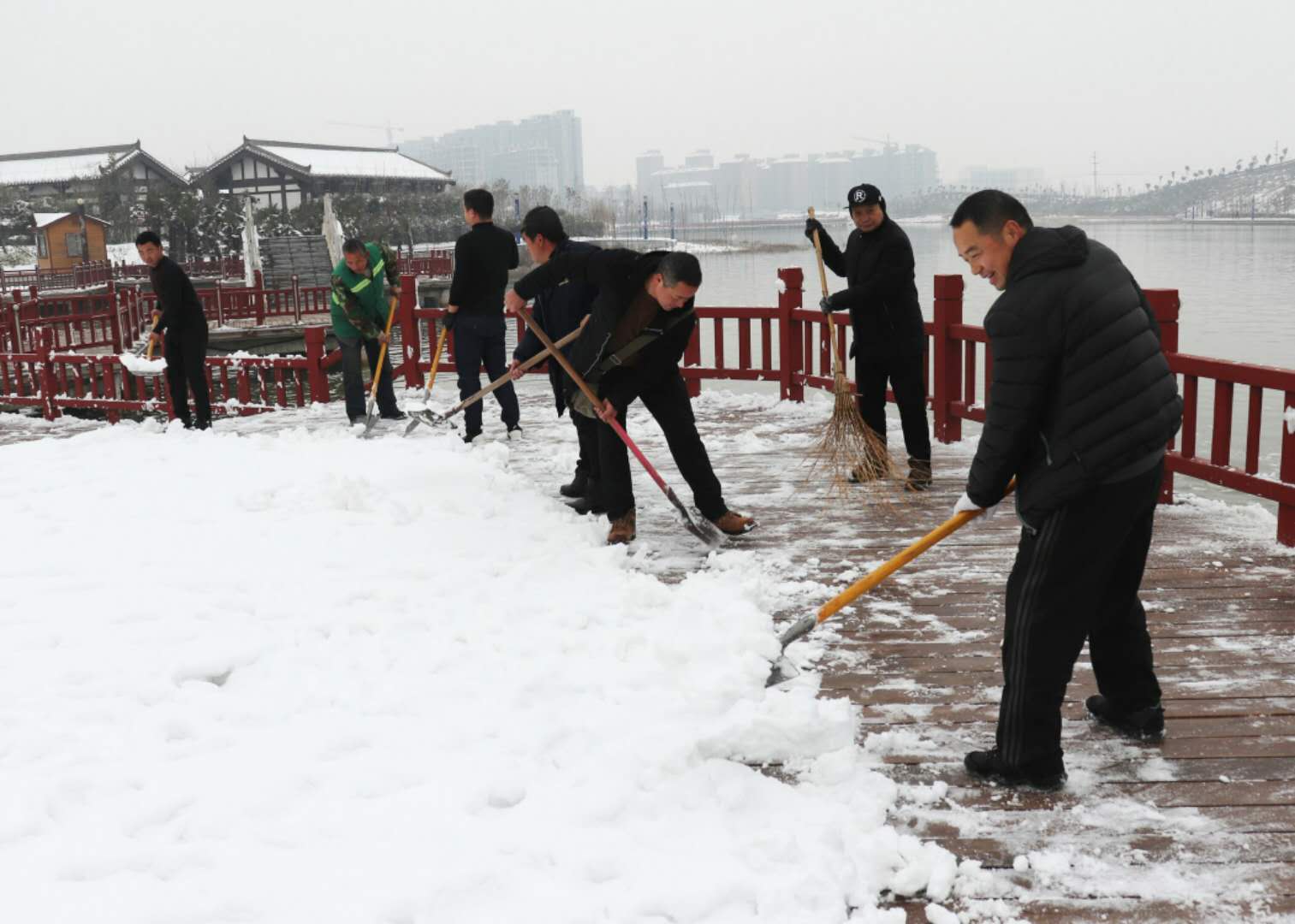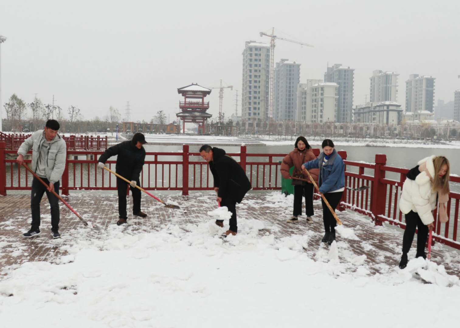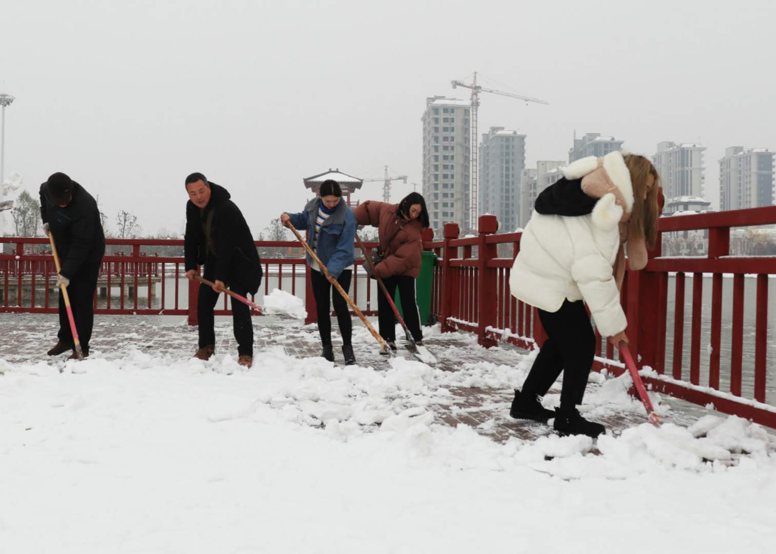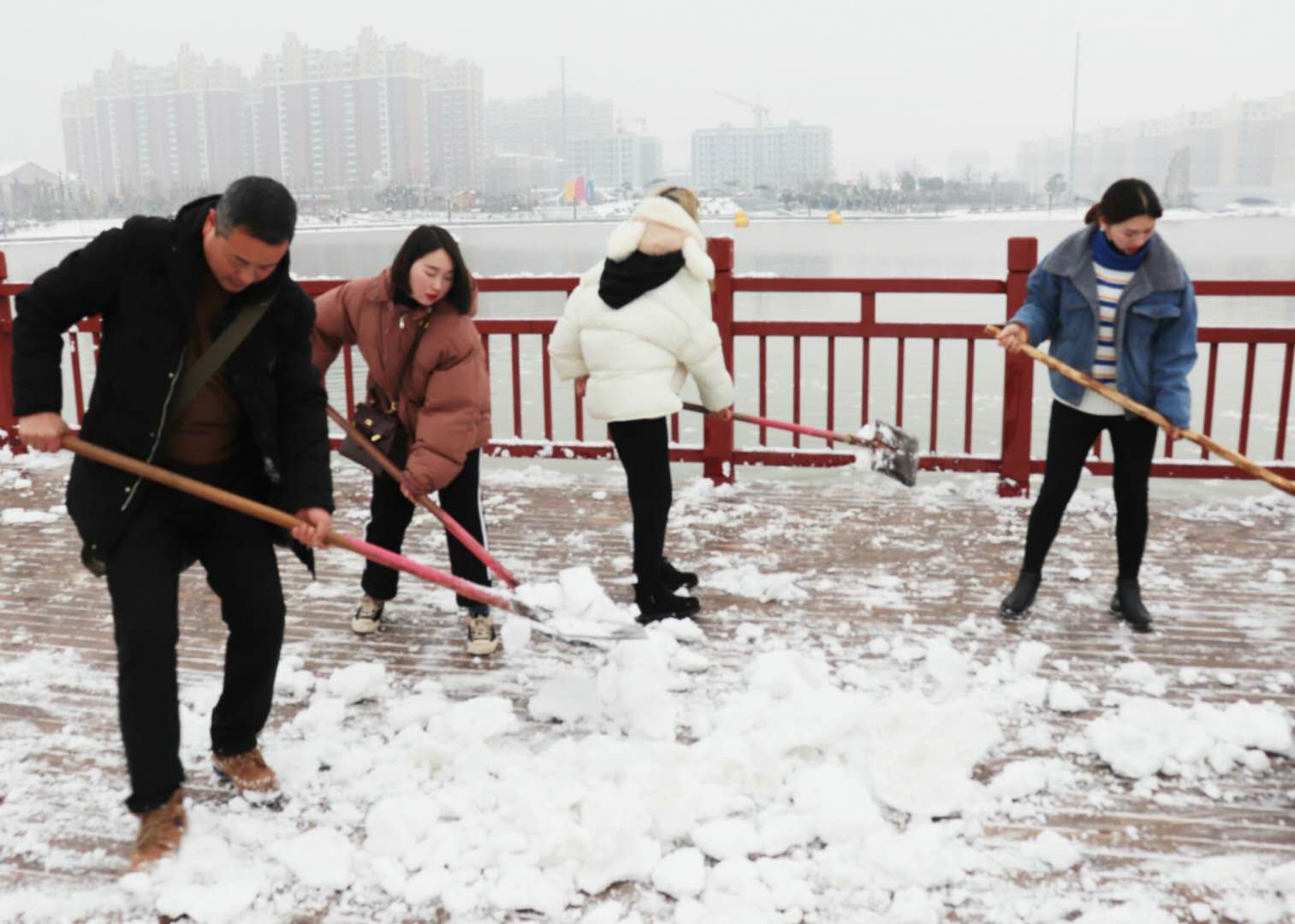 經(jīng)過兩場大雪的洗禮,空氣格外清新,但鹿邑上清湖公園內(nèi)積雪嚴(yán)重,且已結(jié)冰,給市民游園帶來了諸多不便和隱患。從早晨到下午4點(diǎn)半,鹿邑市政園林中心的干部職工和道德公益志愿者在上清湖集合后,投入鏟雪掃雪行動(dòng),經(jīng)過一天的緊張清掃,上清湖湖面棧道和園內(nèi)公路上的積雪清掃一遍。道德公益志愿者鐘華在微信群里提出建議后,有十幾位志愿者報(bào)名參加上清湖義務(wù)掃雪活動(dòng)。