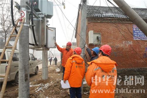 圖為1月16日,縣桐丘電力工程有限公司工程三部施工人員正在對(duì)汴崗鎮(zhèn)水泉村進(jìn)行變壓器更換和高、低壓線路改造施工。