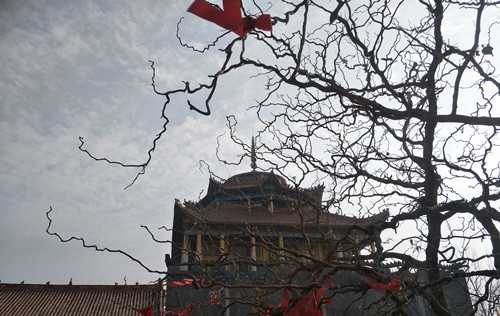站在昆山女媧宮前向南看,一座高大宏偉的建筑物映入記者眼簾,由于它坐北朝南,我們只能看到它的背影。趙俊明告訴我們,那棟建筑物也是一座敬奉女媧娘娘的大殿,叫做媧皇圣宮寶殿。它是由一位女香客自發(fā)捐資修建的,這座氣派的大殿從無到有、從小到大整整用了14年時間,花費(fèi)近千萬元。