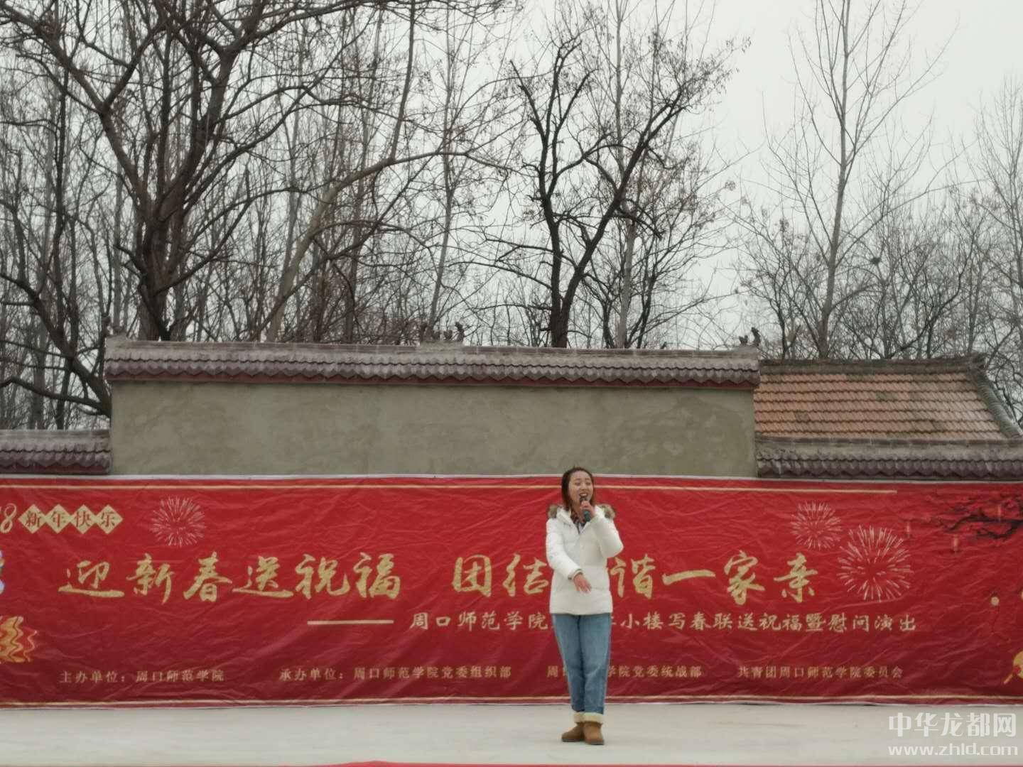 中華龍都網(wǎng)訊(周口報業(yè)全媒體記者 徐松 通訊員 李文明)1月23日,鄲城的氣溫降至零下3℃。周口師范學院黨委副書記楊箴紅、副校長程秀波,帶領學院書法家和藝術團30余名師生,深入鄲城縣李樓鄉(xiāng)李小樓行政村,開展寫春聯(lián)送祝福暨慰問演出活動。精彩紛呈的文藝節(jié)目、火紅的對聯(lián)、真情的慰問讓李小樓數(shù)百群眾忘卻了冬日的寒冷,和慰問團共品“和諧一家親”文化盛宴。鄲城縣人大主任李建軍、工會主席王超以及李樓鄉(xiāng)黨委、政府負責人參加慰問活動。