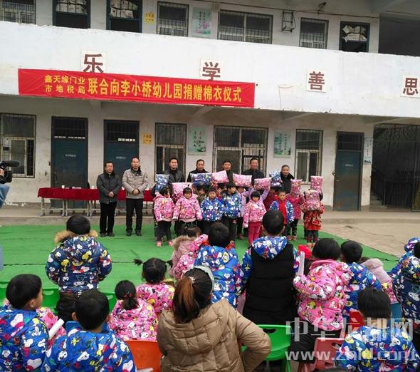 1月22日下午,市地稅局駐村工作隊(duì)聯(lián)合愛(ài)心企業(yè)到太康縣王集鄉(xiāng)李小橋幼兒園開展“送溫暖、獻(xiàn)愛(ài)心”棉衣捐贈(zèng)活動(dòng)。當(dāng)天,共有100多名留守兒童領(lǐng)到了御寒棉衣。記者馬治衛(wèi)通訊員蘇童攝