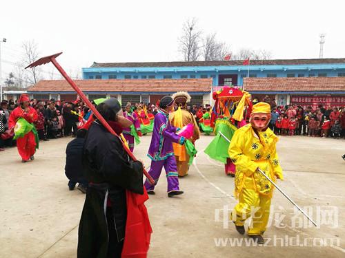 “前幾年農(nóng)閑真是把人閑得心慌,每天都是吃飽等餓、仰著臉上曬日頭?,F(xiàn)在黨的政策好,幫俺提起了精氣神兒,俺村20多個老頭老太太組成一支竹馬旱船腰鼓花棍廣場舞隊(duì),年輕的時候會一點(diǎn),現(xiàn)在見演出就來學(xué)一點(diǎn),上一次李全林縣長晚上住俺這里幫扶,在俺這里看演出,說俺也成專業(yè)隊(duì)了?!边@個群眾隊(duì)的隊(duì)長是78歲的羅有德、扮相是孫悟空,旱船里的“花媳婦”是80歲的郭蘭英。連續(xù)15分鐘的蹦跳表演之后摘掉面具接受記者采訪時,群眾們都不敢相信他們這么大年齡還跳得這么起勁兒。“你們的演出隊(duì)名字太長了”記者說,“哈哈哈哈,俺老頭老太太都是‘三板斧’,也不會起名字,會的這幾招兒都寫到名字上了?!绷_有德、郭蘭英大笑著回答。