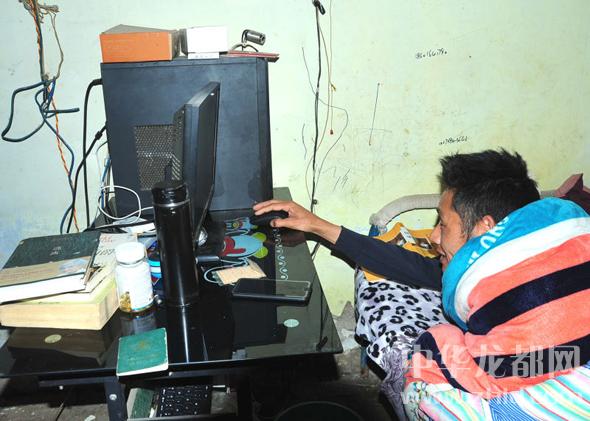 “他非常自強(qiáng)自立,有上進(jìn)心,社會(huì)公德意識(shí)也很強(qiáng)。曾經(jīng)三次遞交入黨申請(qǐng)書,支部考核后,他終于在2011年入黨,因?yàn)樗袆?dòng)不便還堅(jiān)持參加民主生活會(huì),有時(shí)因惡劣天氣我組織黨員到他家去給他補(bǔ)黨課……”該村黨支部書記王進(jìn)宇告訴記者,王成濤的母親在2009年因病去逝,他是家里唯一的男孩,照顧他和生活來源就靠低保和殘疾人補(bǔ)貼以及他父親種地和干點(diǎn)雜活勉強(qiáng)維持。然而天有不測(cè)風(fēng)云,王成濤的父親又因開電動(dòng)車撞上電桿,導(dǎo)致右腿從腿跟截肢,令這個(gè)不幸的家庭雪上加霜。沒有辦法,遠(yuǎn)嫁湖北的妹妹王小轉(zhuǎn)就回到村里開個(gè)小賣部,一邊照顧父親和哥哥,一邊料理這個(gè)家?!罢煞虺鋈ゴ蚬?,孩子在娘家上學(xué),我?guī)讉€(gè)姐姐家里都有事,我只能在娘家照顧他爺倆,哥哥和爸爸生活不能自理呀!七年啦!沒回婆家過過一個(gè)年。”面對(duì)家里的現(xiàn)狀,妹妹王小轉(zhuǎn)話未出口眼里便涌滿了淚水。