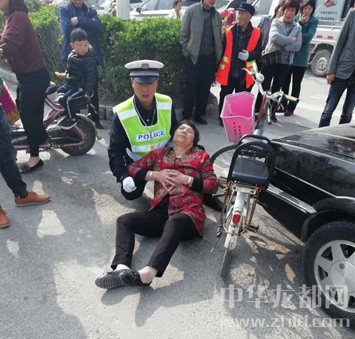 中華龍都網(wǎng)訊(周口報業(yè)全媒體記者 徐松 通訊員 王中華)3月29日上午9時許,鄲城縣交警大隊(duì)交警閆邵梁、潘俊飛、肖冰冰正在新華路府西路路口執(zhí)勤,突然一輛黑色轎車與一位騎自行車的老人發(fā)生碰撞,發(fā)生碰撞后騎自行車的老人當(dāng)時趴在自行車上,不能動彈。