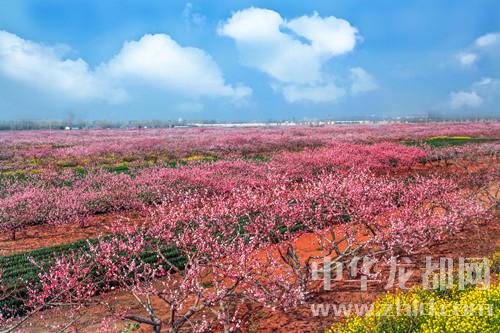 萬(wàn)畝桃園位于黃橋鄉(xiāng)裴莊村。該村在改革開放前,每人每年只能收獲幾十斤糧食。實(shí)行聯(lián)產(chǎn)承包責(zé)任制后,這個(gè)村依然是“麥茬豆,豆茬麥,改茬就把紅薯栽”。到了1986年底,該村的吳新躍、吳新民、吳新生等6戶村民再也坐不住了,聚在一起商量如何改變傳統(tǒng)的種植模式。最后他們決定在自家責(zé)任田種植桃樹。3年后,6戶村民種的桃樹掛果了,當(dāng)年每戶收入超過(guò)2000元。群眾看種植桃樹有利可圖,紛紛效仿,于是以裴莊村為中心的桃樹種植面積越來(lái)越大。到2005年,全鄉(xiāng)桃樹種植面積發(fā)展到萬(wàn)余畝,形成了“春季花滿園,秋季果飄香”的人間仙境。