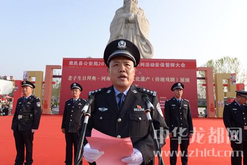 中華龍都網(wǎng)訊(周口報(bào)業(yè)全媒體記者 李瑞才 通訊員 石中華 文/圖)為扎實(shí)做好2018年老子廟會(huì)系列活動(dòng)安全保衛(wèi)工作,進(jìn)一步鼓舞士氣、激勵(lì)斗志,誓奪系列活動(dòng)安保工作決戰(zhàn)全勝。2018年3月30日下午,鹿邑縣公安局在太清宮老子文化廣場(chǎng)隆重舉行2018年老子廟會(huì)系列活動(dòng)安全保衛(wèi)誓師大會(huì),周口市公安局黨委委員、鹿邑縣副縣長(zhǎng)、公安局長(zhǎng)何新敏出席大會(huì)并作動(dòng)員講話(huà)。局黨委全體班子成員和參加安保執(zhí)勤的全體民警、輔警、武警官兵、消防隊(duì)員共計(jì)1200余人參加了誓師大會(huì)。誓師大會(huì)由政委任金瑞主持。