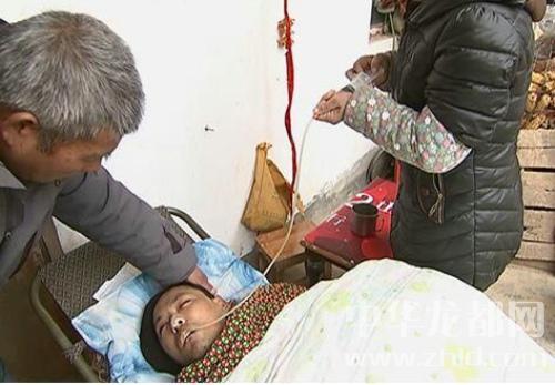 病人叫張肖,家住太康縣遜母口鎮(zhèn)劉橋行政村邵莊村,此人人脈很好、平時精明能干,曾在洛陽等地承包工地搞建筑。2015年3月的一天夜里10時許,他和朋友晚飯后騎車回住地途中,不慎摔倒在地。當時,暈暈乎乎感覺沒事,回家就休息了,第二天已不省人事,在鄭大一附院做了開顱手術,光淤血抽出來100多毫升,頭腫的眼都看不見。張肖的父親張德印回憶說張肖在鄭治療花費60多萬,由于無力支付高額醫(yī)療費用,轉診到太康縣醫(yī)院又花十多萬。令人惋惜的是,張肖錯過了最佳治療時間,從此成了植物人。