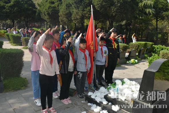 校長王新剛教育同學(xué)們要傳承革命先烈偉大的愛國主義精神和敢于擔(dān)當(dāng)?shù)呢?zé)任意識(shí),勤奮學(xué)習(xí),努力成才。學(xué)生代表陳俞含同學(xué)發(fā)言慷慨激昂,代表全體學(xué)生表達(dá)了報(bào)效祖國的決心。全體少先隊(duì)員在墓碑前宣誓,“熱愛祖國、誠實(shí)勇敢、自律自強(qiáng)、奮發(fā)有為、振興中華?!鄙傧汝?duì)員們的鏗鏘誓言響徹在烈士陵園上空。整個(gè)過程中,莊嚴(yán)肅穆。隨后,全體師生排著整齊的隊(duì)伍,繞墓碑一周,依次將白花擺放在烈士墓前,并深深鞠躬,表達(dá)對(duì)烈士的敬意與懷念。