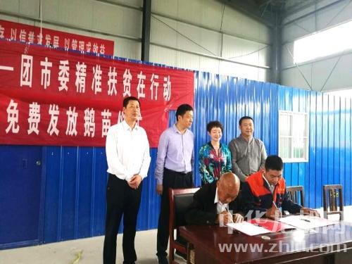 中華龍都網(wǎng)訊(周口報(bào)業(yè)全媒體記者 張猛 通訊員 胡永濤)5月11日上午,團(tuán)市委駐西華縣東王營(yíng)鄉(xiāng)李方口村工作隊(duì)聯(lián)合周口建成鵝業(yè)舉行為貧困戶獻(xiàn)愛(ài)心免費(fèi)發(fā)放鵝苗儀式。團(tuán)市委副處級(jí)紀(jì)檢員楊朝暉,西華縣副縣長(zhǎng)毛茹,縣政府辦公室副主任寇新兵,東王營(yíng)鄉(xiāng)黨委書記彭杰等出席儀式。