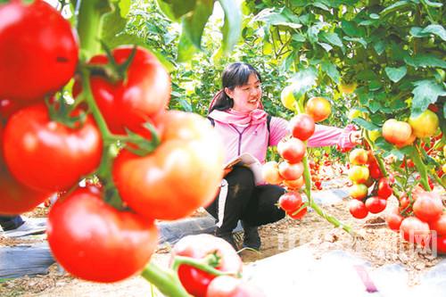 依托河南農(nóng)業(yè)大學(xué)專家團(tuán)隊(duì),扶溝縣蔬菜研究院研發(fā)出400多個(gè)番茄新品種,通過集中展示讓種植戶優(yōu)中選優(yōu),并實(shí)施對(duì)貧困戶購(gòu)買種苗優(yōu)惠50%、特困戶免費(fèi)供應(yīng)的優(yōu)惠政策,帶動(dòng)206戶貧困戶實(shí)現(xiàn)脫貧。圖為工作人員在記錄番茄新品種的試驗(yàn)數(shù)據(jù)。谷志方 攝
