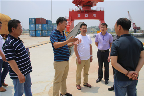 中華龍都網訊(周口報業(yè)全媒體記者 宋風 文/圖) 6月22日上午,來自江蘇連云港、宿遷的兩家港口企業(yè)組團到周口中心港參觀考察,交流業(yè)務。