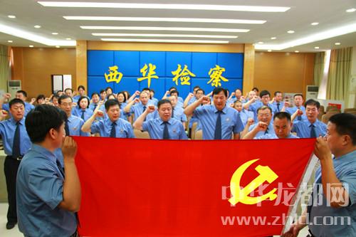 中華龍都網(wǎng)訊(周口報業(yè)全媒體記者 竇娜 通訊員 屈琳琳)“我志愿加入中國共產(chǎn)黨,擁護黨的綱領(lǐng),遵守黨的章程,履行黨員義務(wù),執(zhí)行黨的決定……”6月28日,面對鮮紅的黨旗,西華縣人民檢察院副檢察長、黨支部書記劉新建帶領(lǐng)全體黨員高舉右手,重溫入黨誓詞。