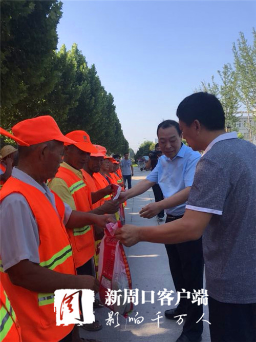 7月20日上午,鄲城縣總工會(huì)開展夏季“送清涼”活動(dòng),慰問了冒著酷暑堅(jiān)守工作崗位的環(huán)衛(wèi)工人、執(zhí)勤交警和洺河生態(tài)水系治理一線建筑工人,為他們送去了毛巾、白糖、綠豆、風(fēng)油精、洗衣粉、礦泉水等防暑降溫物品。