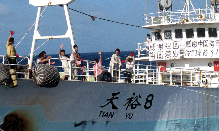 2009年2月8日下午,飽經(jīng)風(fēng)雨、銹跡斑斑的“天裕8號”進(jìn)入視野,航行在??谂炗仪胺?,搖曳在風(fēng)浪中,猶如一個失散多年的孩子。