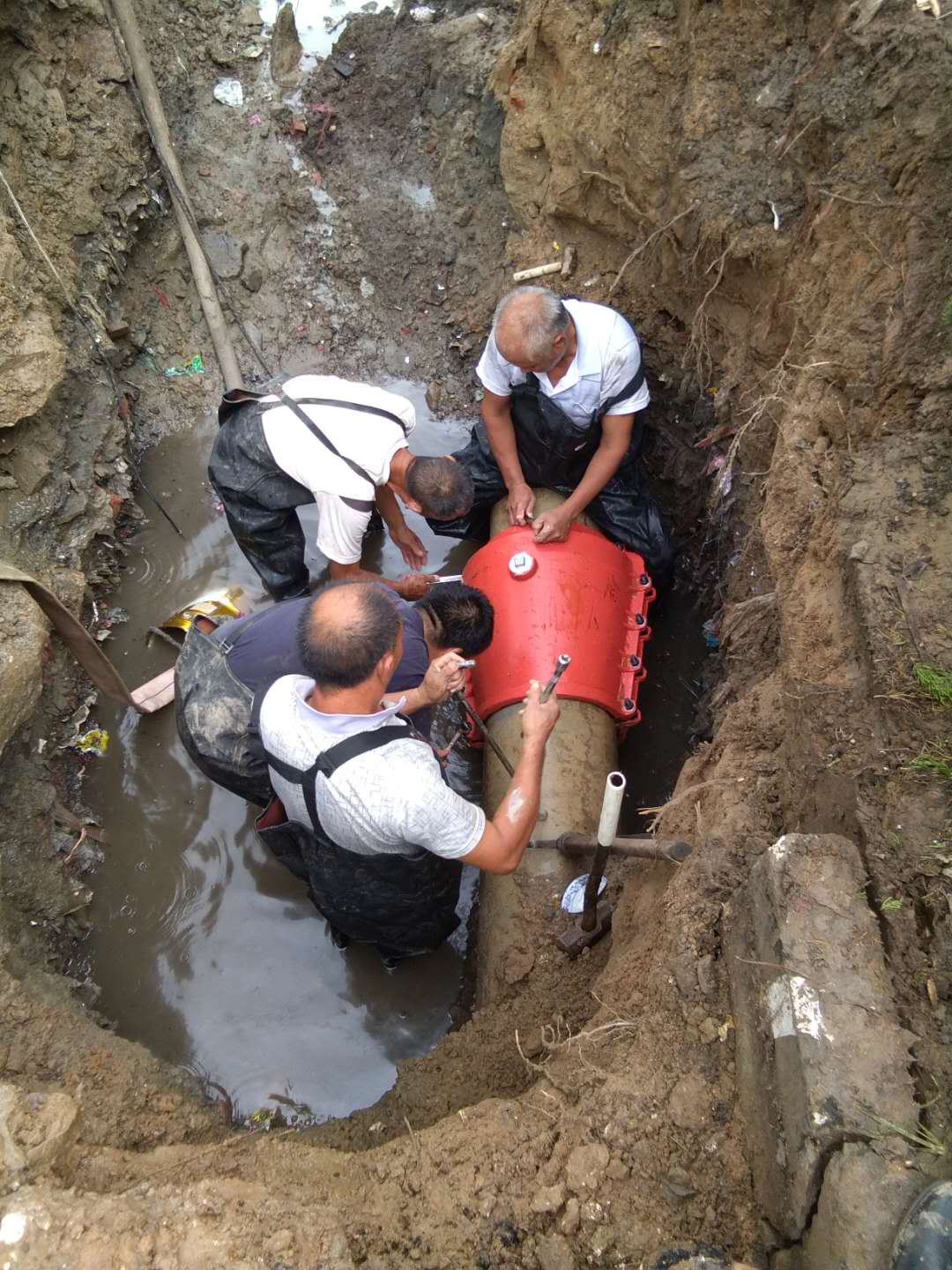 左圖 維修人員在交通大道搶修爆裂的供水管道。記者 彭慧 攝