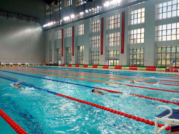 據(jù)了解,市游泳館占地面積4.4萬平方米,總建筑面積24398.69平方米,地上建筑面積20846.08平方米,地下建筑面積3552.61平方米,地上三層、地下一層,可容納觀眾1200人。市游泳館內(nèi)共有兩個(gè)大的泳池,一個(gè)比賽用,長50米、寬25米,規(guī)格達(dá)到奧運(yùn)會(huì)游泳比賽泳池標(biāo)準(zhǔn),比賽時(shí)水深將達(dá)到2米;另外一個(gè)練習(xí)用,供參賽選手熱身,水深1.2米。
