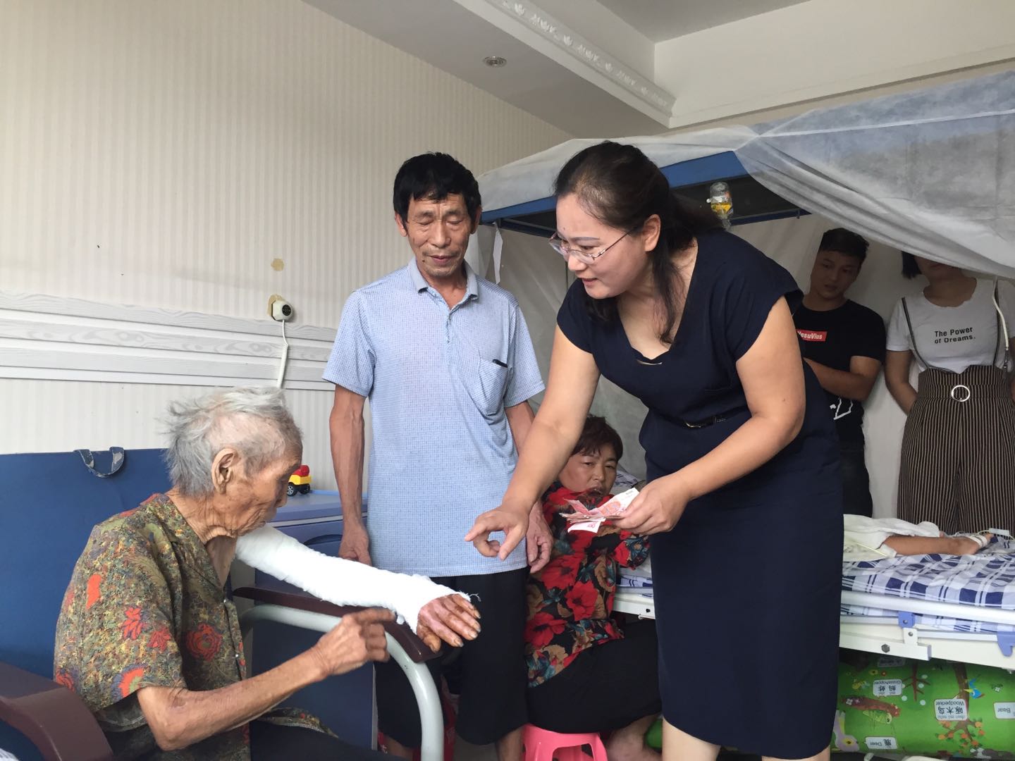 8月26日,駐村第一書記劉春華和村脫貧責任組組長李小林懷著感激之情,為周口燒傷醫(yī)院送去錦旗兩面。周口燒傷醫(yī)院長張巋說:“幫扶工作是黨的工作,縣、鄉(xiāng)、村干部的真心幫扶,我們醫(yī)院也應當發(fā)揮扶貧濟困的作用,盡一些社會責任,為貧困的群眾做點好事,解決他們的實際困難”,院方當即決定贈送給李二俊老太太2000元現金營養(yǎng)費?!?/p>