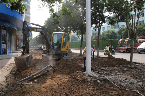 施工現(xiàn)場(chǎng),工人們正在鋪設(shè)路邊石,雨水管道、污水管道修建均已完工,預(yù)制灌漿水泥、紅綠燈改造拆卸正在進(jìn)行當(dāng)中,路邊人行道上,挖掘機(jī)在平整路基,工程西段正在翻新路面……施工方負(fù)責(zé)人告訴記者:“我們會(huì)在施工的過(guò)程中保證沿途圍檔干凈整潔,整齊有序,并張貼醒目警示標(biāo)語(yǔ),每天定時(shí)灑水壓塵,盡量不影響市民出行。”