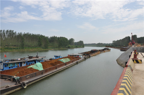 當(dāng)日上午,在商水港貨場,兩臺(tái)起重設(shè)備機(jī)聲轟鳴,忙碌的工作人員揮汗如雨。記者看到, 這個(gè)船隊(duì)由9條駁船、兩臺(tái)拖船組成,駁船上滿載貨物,拖船上幾個(gè)身著背心的船工正指點(diǎn)著河水談?wù)撝裁?。商水港?fù)責(zé)人孫玉田告訴記者,這些船上的貨物是產(chǎn)于菲律賓的鎳土,有一萬多噸,貨主為中遠(yuǎn)海運(yùn)物流有限公司,鎳土由海輪從菲律賓運(yùn)到連云港,然后換裝到這9條駁船上,由連云港經(jīng)京杭大運(yùn)河、淮河、沙潁河歷時(shí)多天到達(dá)商水港。鎳土買主為我省長葛市河南鑫金匯不銹鋼產(chǎn)業(yè)有限公司,用作不銹鋼生產(chǎn)的添加材料?!耙蝗f多噸貨物,能在商水港下船,我們又省了不少錢!”河南鑫金匯不銹鋼產(chǎn)業(yè)有限公司相關(guān)人員表示。