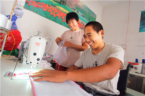 “建舟,你去歇會(huì)兒,剩下的我來(lái)做?!蓖跷迥荽叽僦煞颍呀?jīng)好幾次了。“我不累,貨明天就要交,我再干會(huì)兒?!弊蛉丈衔?,朱建舟坐在輪椅上,在改裝好的“手動(dòng)縫紉機(jī)”上忙碌。