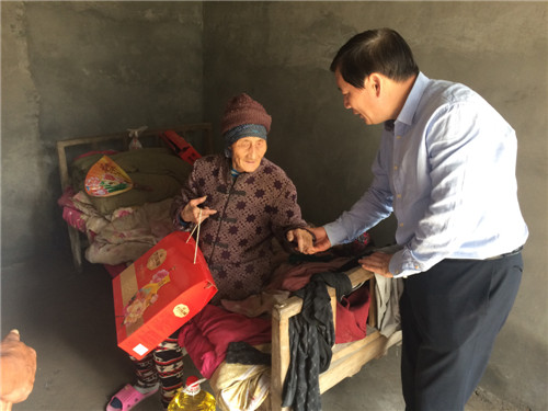 高老村一組貧困戶高世林家中3口人,本人殘疾,老兩口年齡偏大,兒子勞動能力差 ,是高永強聯(lián)系的扶貧對象。在高世林家中,高永強與老人親切交談,詳細詢問近期身體狀況和生活情況,表示今后將抽出更多時間走訪,幫助其解決更多的實際困難, 他叮囑老人要注意身體,有困難和需求及時向村黨組織和鄉(xiāng)黨委、鄉(xiāng)政府反映。小莊村一組貧困戶劉險,家中兩口人,本人年紀大臥床不起,兒子智力殘疾。高永強來到她家,看到剛剛搬進的新居還沒有通電、通水、通氣,立即叮囑村黨支部書記朱四軍 ,及時解決好這些問題,配齊必需的桌、椅、床、爐等生活用品,讓老人感到融融暖意。