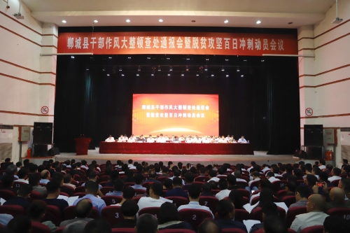 10月7日上午,鄲城縣干部作風大整頓第四次查處通報大會暨脫貧攻堅“百日沖刺”動員會召開。會議貫徹落實全省脫貧攻堅電視電話會議和脫貧退出培訓會議精神,聚焦脫貧摘帽目標任務和作風問題,分析當前形勢,進一步動員全縣上下統(tǒng)一思想、提振精神,強化責任、盡銳出戰(zhàn),向脫貧摘帽發(fā)起總攻??h委書記羅文閣出席會議并講話,縣長李全林主持會議??h領導崔衛(wèi)國、李建軍、姜永來、侯磊、吳青鋒、王智華、呂振龍、馬超、胡友濤、崔衛(wèi)華、劉輝等參加會議。