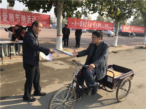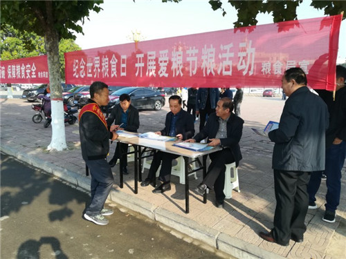 在世界糧食日當(dāng)天,以縣糧食局為牽頭單位,在縣政府及局門口設(shè)立宣傳主會(huì)場,制作展板4塊,懸掛條幅32條,出動(dòng)宣傳車6輛,數(shù)十名工作人員統(tǒng)一佩戴宣傳標(biāo)語綬帶,為過往市民宣傳講解糧食安全知識(shí),并接受全縣種糧大戶、合作社人員現(xiàn)場咨詢。當(dāng)日,主會(huì)場共發(fā)放宣傳資料3000余份,讓廣大市民了解糧食安全、愛糧節(jié)糧、糧油選購、合理膳食等科普知識(shí)。