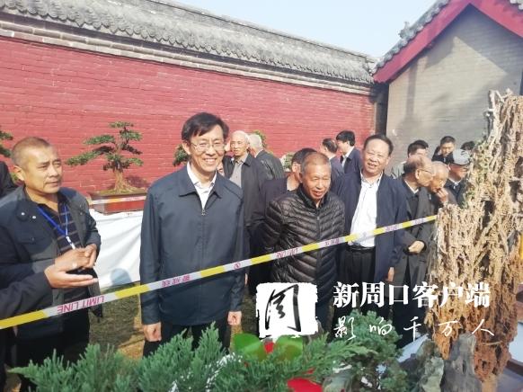 簡樸、熱烈的開幕式結束后,與會人員饒有興趣地欣賞分布各個展區(qū)的盆景和菊花,精美的盆景和金黃的菊花讓人流連忘返。